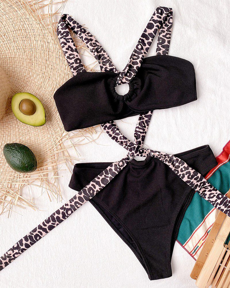 Style: Sexy Material: Polyester Neckline: Halter Sleeve Style: Sleeveless Length: Regular Pattern Type: Leopard Decoration: Strappy,O-Ring Fit Type: Skinny Occasion: Vacation Package Include: 1*Swimwear