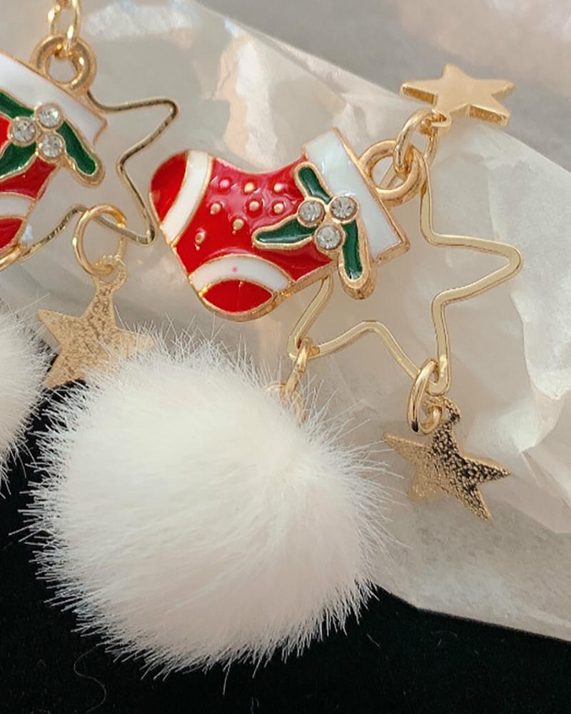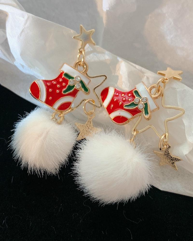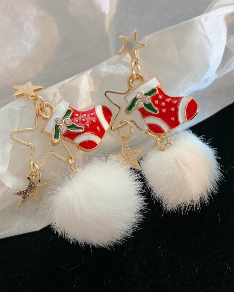 Christmas Star Socks Pattern Pom Pom Drop Earrings