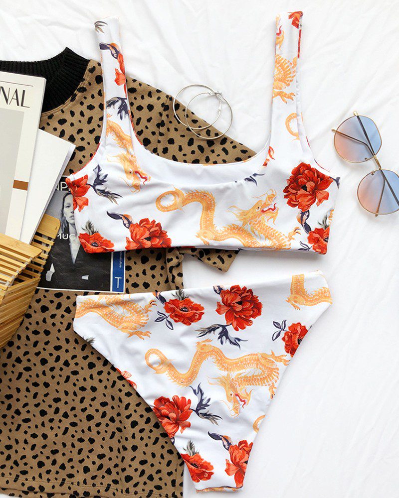 Style: Sexy Material: Polyester Neckline: Square Neck Sleeve Style: Thick Strap Length: Regular Pattern Type: Graphic,Floral Decoration: Dragon Print Fit Type: Regular Occasion: Vacation Package Include: 1*Swimwear