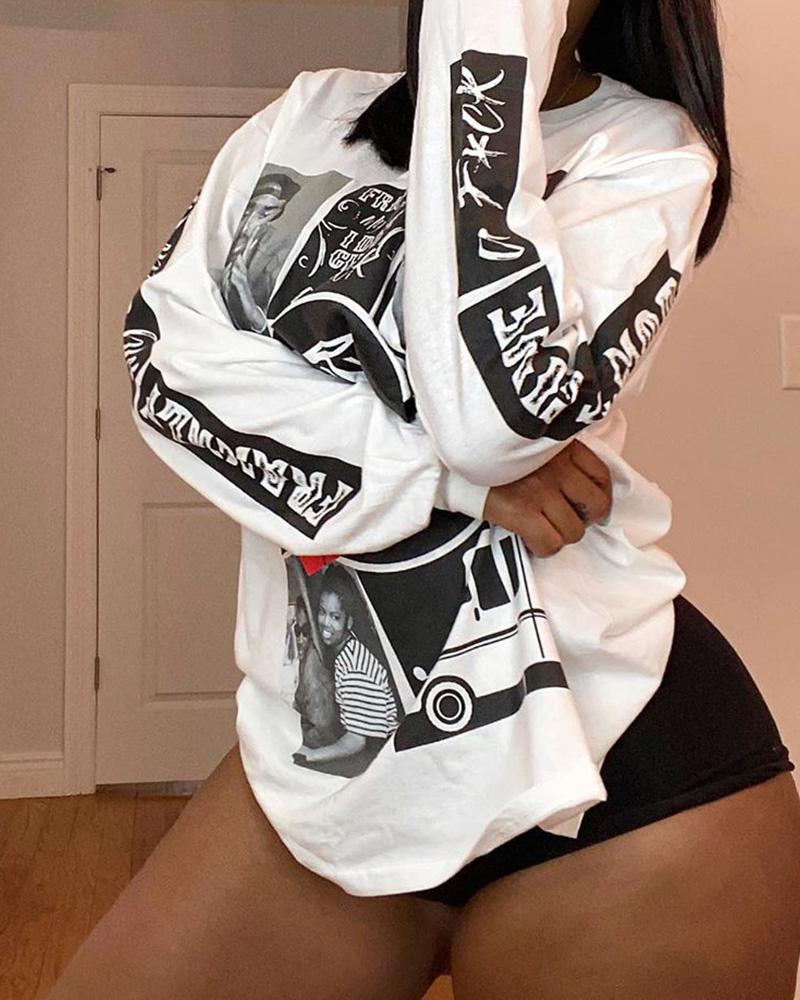 Style: Casual Type: Tee Material: Polyester Neckline: Round Neck Sleeve Style: Long Sleeve Length: Regular Pattern Type: Graphic Fit Type: Regular Season: Summer Occasion: Daily Package Include: 1* Top Note:There might be 2-3% difference according to manual measurement.