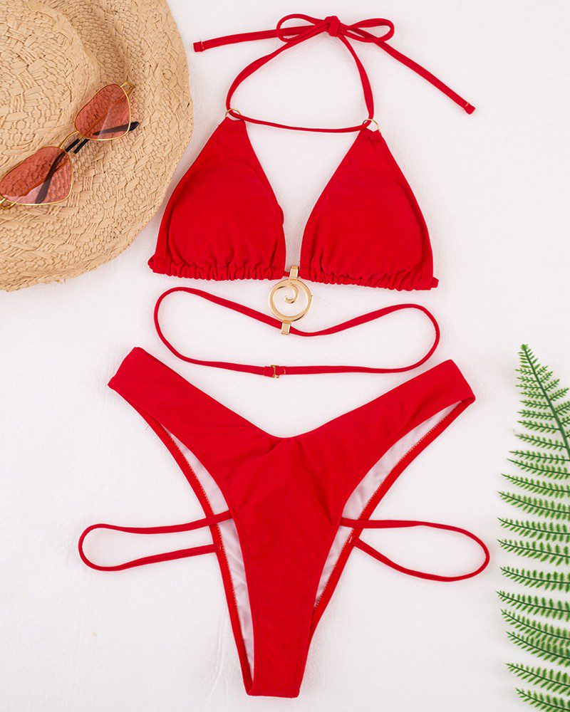 Style: Sexy Material: Nylon Neckline: Halter Sleeve Style: Sleeveless Length: Regular Pattern Type: Plain Decoration: Cutout, O-Ring Fit Type: Skinny Occasion: Vacation Package Include: 1*Swimwear