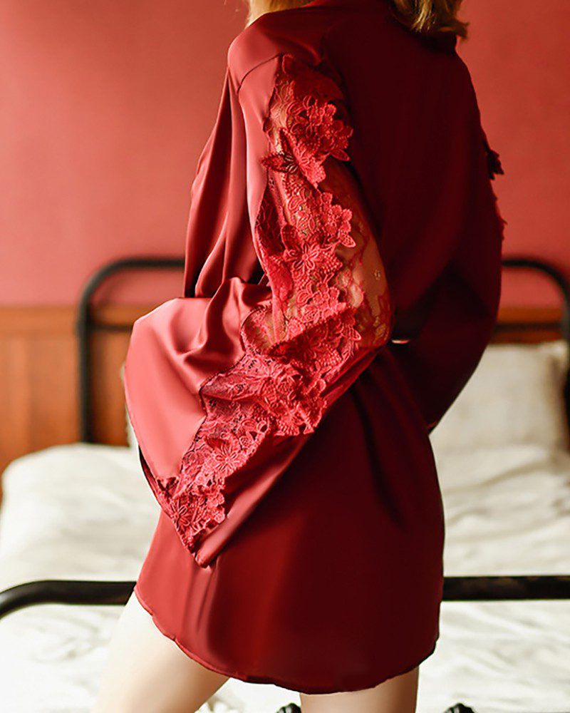 Style: Romantic Type: Robes Material: Lace,Satin Neckline: Open Front Sleeve Style: Long Sleeve Length: Regular Pattern Type: Plain Decoration: Lace Fit Type: Regular With Belt: Yes Occasion: Home Package Include: 1*Robe
