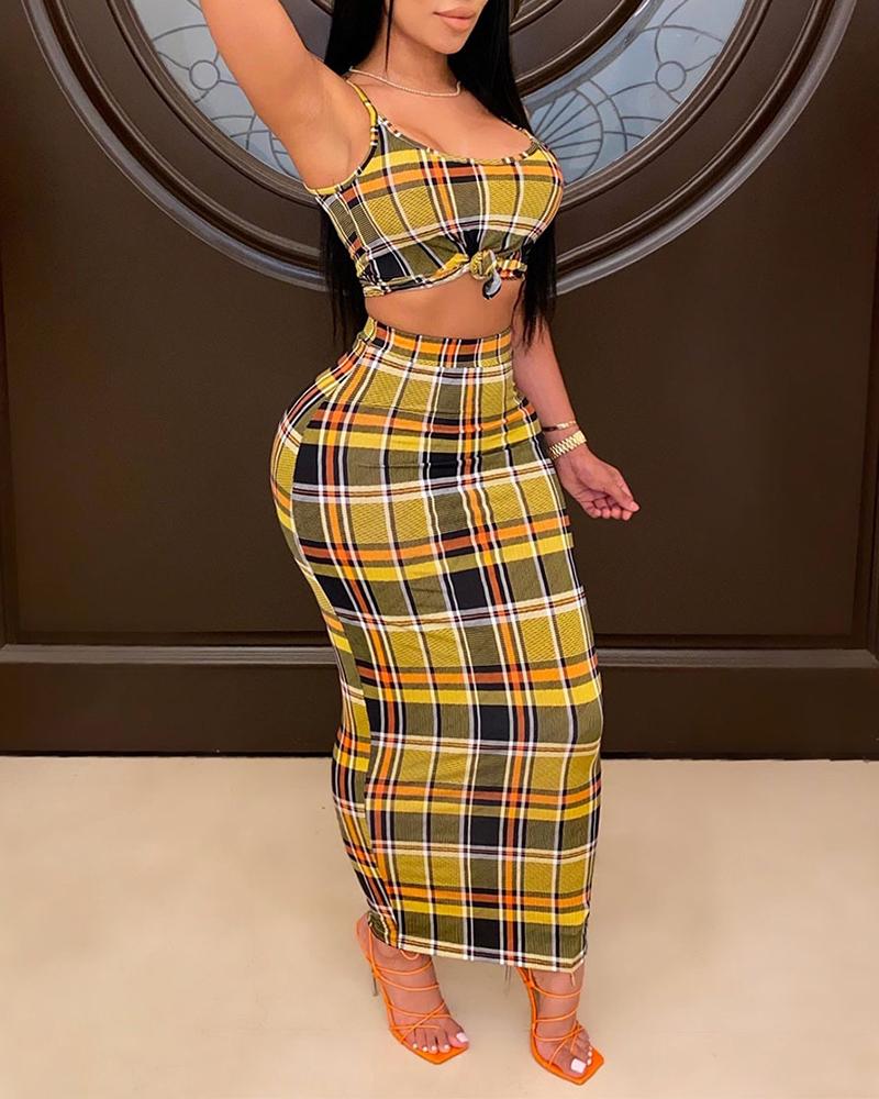 Style: Sexy Type: Skirt Sets Material: Polyester Neckline: U-Neck Sleeve Style: Spaghetti Strap Length: Maxi Pattern Type: Plaid Fit Type: Skinny Season: Summer Occasion: Daily Package Include: 2PCS Note:There might be 2-3% difference according to manual measurement.