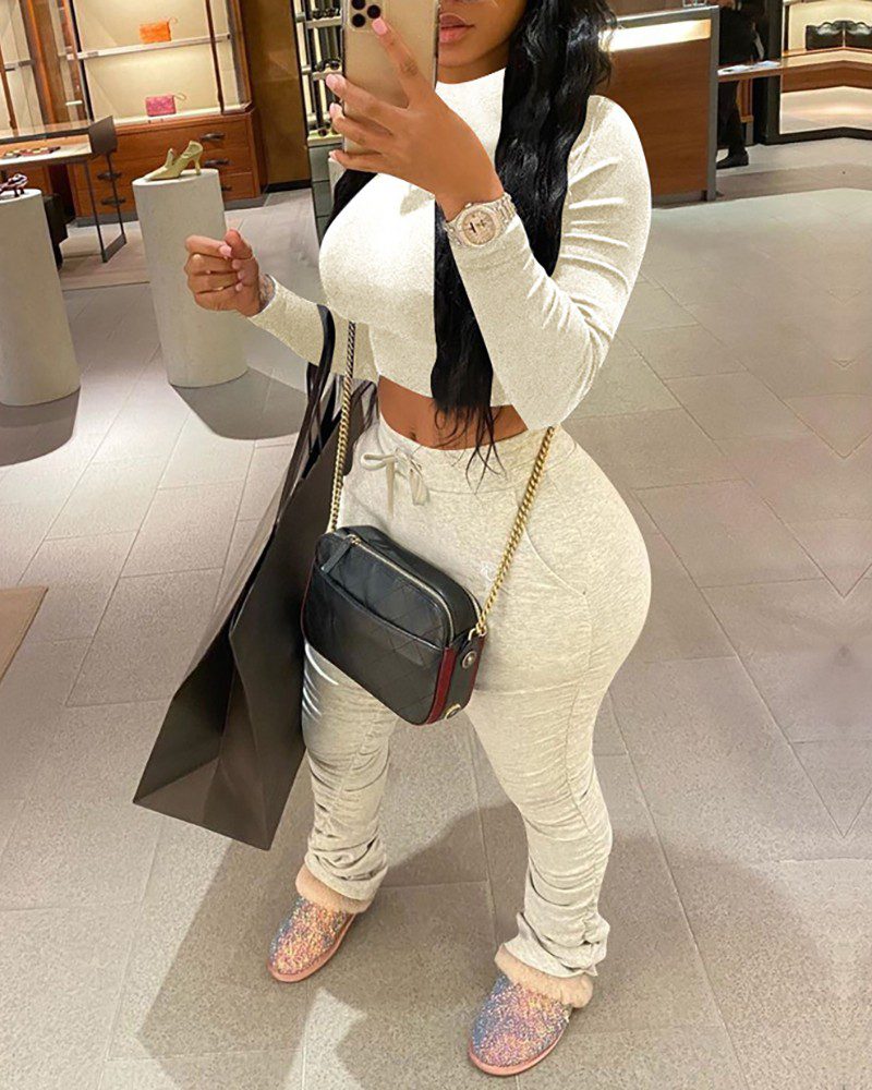 Style: Sexy Material: Polyester Neckline: Round Neck Sleeve Style: Long Sleeve Length: Long Pattern Type: Plain Fit Type: Skinny Season: Fall Occasion: Street Package Include: Top & Pant Sets Note:There might be 2-3% difference according to manual measurement.Please check the measurement chart carefully before you buy the item.+Please note that slight color difference should be acceptable due to the light and screen.