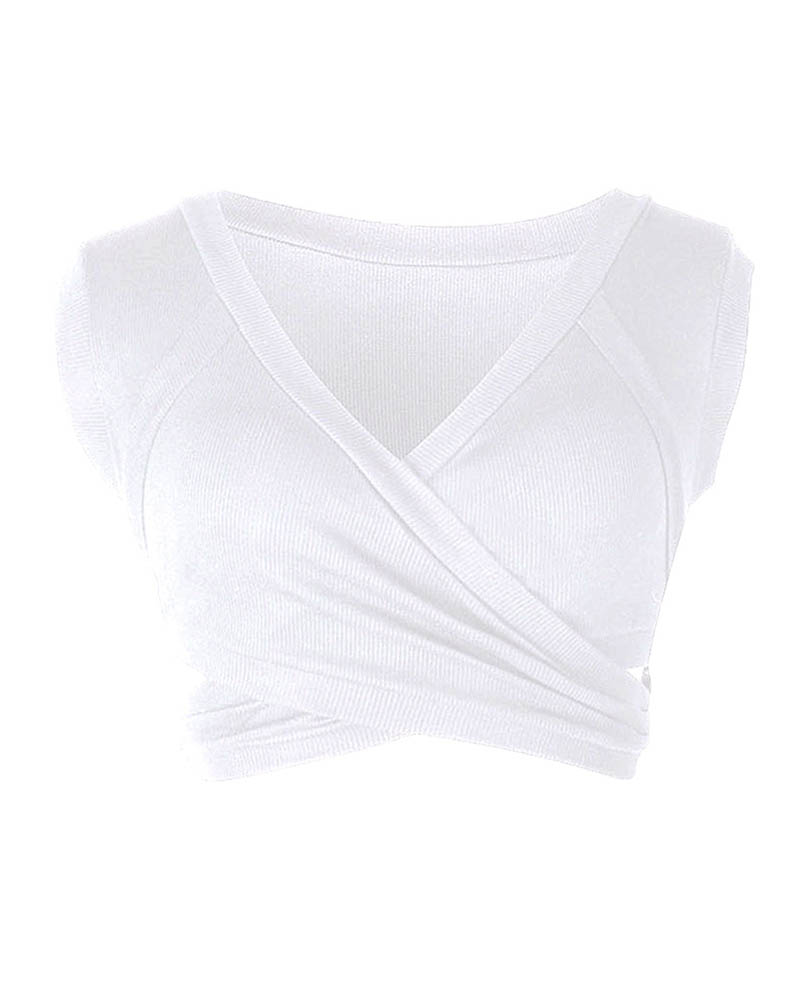 Style: Basics Type: Regular Material: Ribbed,97% Polyester,3% Spandex Neckline: V-Neck Sleeve Style: Sleeveless Length: Regular Pattern Type: Plain Decoration: Wrap Fit Type: Skinny Occasion: Daily Package Include: 1*Top