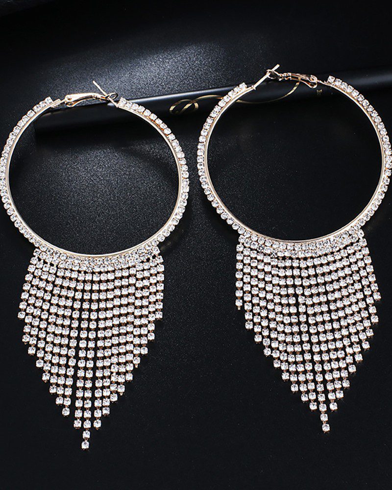 Design: Sparkling shiny rhinestones are set on a beautiful silver tone metal. Gorgeous delicate studded dangling tassel hoop earrings.